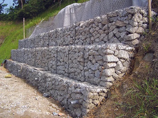 Gabion is non-rigid structure constructed of double twisted hexagonal mesh cages filled with rocks to serves as retaining structure or surface protection against erosion. United Gabion allow free passage of water thus eliminates buildup of hydrostatic pressure behind retaining structures. Normally used at bottom of slope to increase toe weight or as retaining structure.
